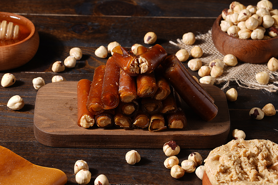 Fındık,dut pekmezi,bal,süt,su,şeker,buğday nişastası,un,tahin
